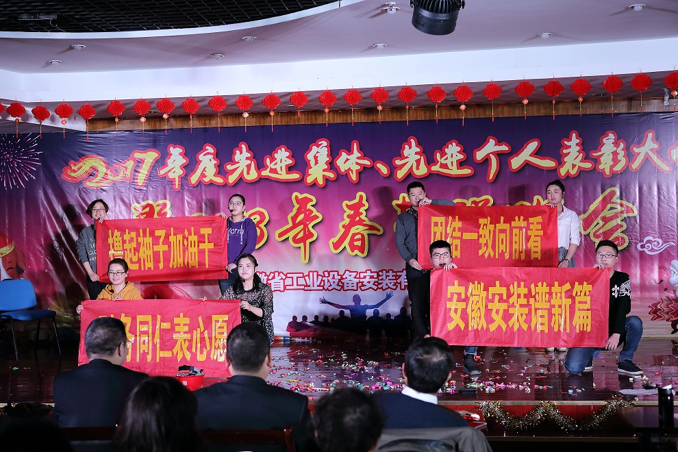 彩鳳辭舊歲,金犬迎新春。2月8日下午,安徽安裝公司2018年迎新春聯(lián)歡會如期舉行。公司領(lǐng)導(dǎo)及全體員工200余人歡聚一堂,共迎新春佳節(jié),共享節(jié)日喜悅!