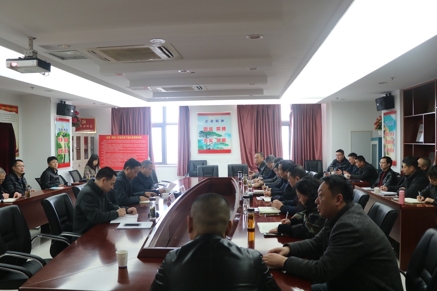 同時,牛曙東也為安徽安裝公司的下一步發(fā)展提出了幾點要求:一要嚴明政治紀律,轉(zhuǎn)變工作作風。領(lǐng)導(dǎo)班子成員要帶頭“嚴”起來,將政治、組織、思想、作風、紀律建設(shè)貫穿于黨建工作全過程,進一步落實到具體行動上,扎實開展“嚴規(guī)矩、強監(jiān)督、轉(zhuǎn)作風”集中整治專項行動,確保專項行動取得實效;二要激勵干部擔當作為,抓好干部人才隊伍建設(shè)。“得人在審舉,審舉在核真”,要從嚴干部選拔流程,嚴格干部考察,以重點市場、重點項目為舞臺,鍛煉培養(yǎng)年輕干部,打造高素質(zhì)專業(yè)化干部隊伍;三要著力防范化解經(jīng)濟、黨建、穩(wěn)定等各領(lǐng)域風險隱患。強化風險意識,提高風險化解能力,堅決打好防范化解重大風險攻堅戰(zhàn);四要強化政治理論武裝,抓好領(lǐng)導(dǎo)班子建設(shè)。進一步樹牢“四個意識”,堅定“四個自信”,堅決做到“兩個維護”,對照“三嚴三實”從嚴抓好領(lǐng)導(dǎo)班子隊伍建設(shè),勤修“四德”,相互補位,密切交流,作好表率,帶領(lǐng)廣大干部職工堅定信心、團結(jié)一致、奮發(fā)努力,推進各項工作順利開展。