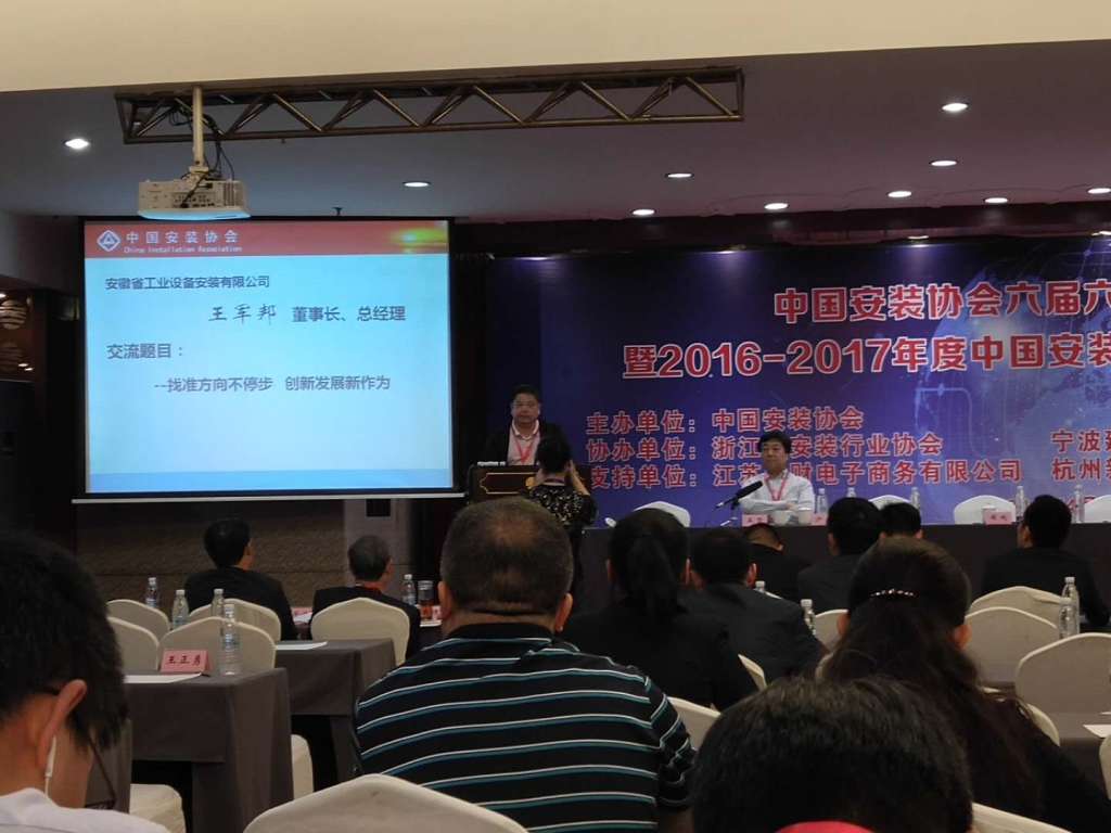 會議進行了企業(yè)先進管理經(jīng)驗交流,邀請了部分企業(yè)領導及行業(yè)專家,圍繞“安裝企業(yè)創(chuàng)新與發(fā)展”主題進行演講。安徽省安裝和機械設備協(xié)會會長,安徽省工業(yè)設備安裝有限公司董事長、總經(jīng)理王軍邦應邀代表安徽省協(xié)會,發(fā)表了題為“找準方向不停步,創(chuàng)新發(fā)展新作為”的精彩演講。引起了與會者的強烈共鳴,并贏得陣陣掌聲。各省代表們緊密結(jié)合黨的十九大中提出的“堅持新發(fā)展理念”及“創(chuàng)新是引領發(fā)展的第一動力”的戰(zhàn)略思想,結(jié)合企業(yè)科技創(chuàng)新、人才培養(yǎng)、經(jīng)營管理方面的實際問題,分享本企業(yè)的先進做法與寶貴經(jīng)驗,圍繞“安裝企業(yè)創(chuàng)新與發(fā)展”這一核心議題進行演講,給與會者留下深刻印象。