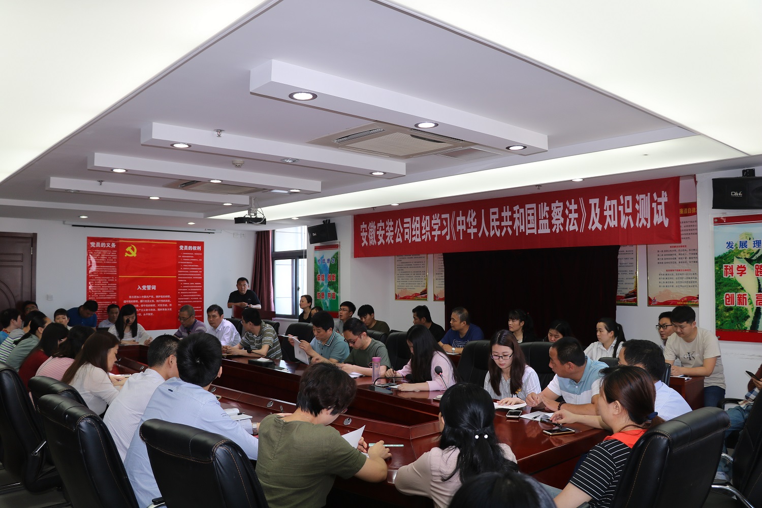 隨后,為了檢驗學習效果,當場進行了《監(jiān)察法》知識測試,考試過程中,全體參考人員嚴守考場紀律,態(tài)度端正、認真答卷,考場秩序井然有序,確保了考試的公正嚴肅性。此次測試題型設置上為單選題和簡答題,卷面滿分100分,通過此次知識測試,使機關全體干部職工對自身所擔負的責任和應盡的義務有了更加全面的認識,增強了依法監(jiān)督意識,達到了以考促考的目的,為推動國有企業(yè)黨風廉政建設和反腐敗工作營造良好氛圍。
